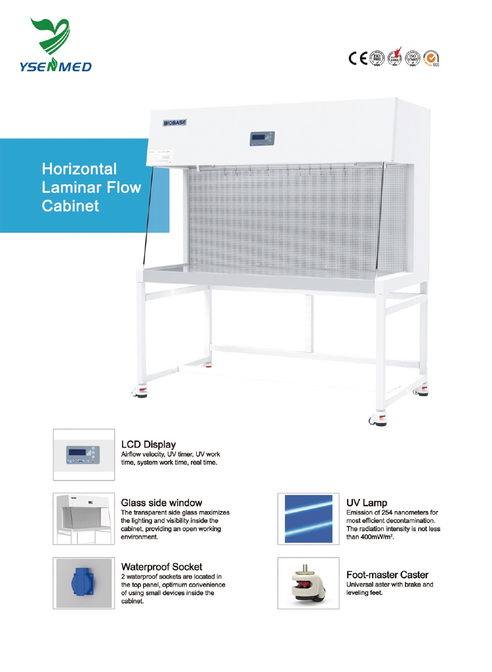 Área de trabajo: acero inoxidable 304 Cuerpo principal: acero laminado en frío de 1,0 mm con recubrimiento de polvo antibacteriano Ventana lateral de vidrio: vidrio templado de 8 mm, anti-UV