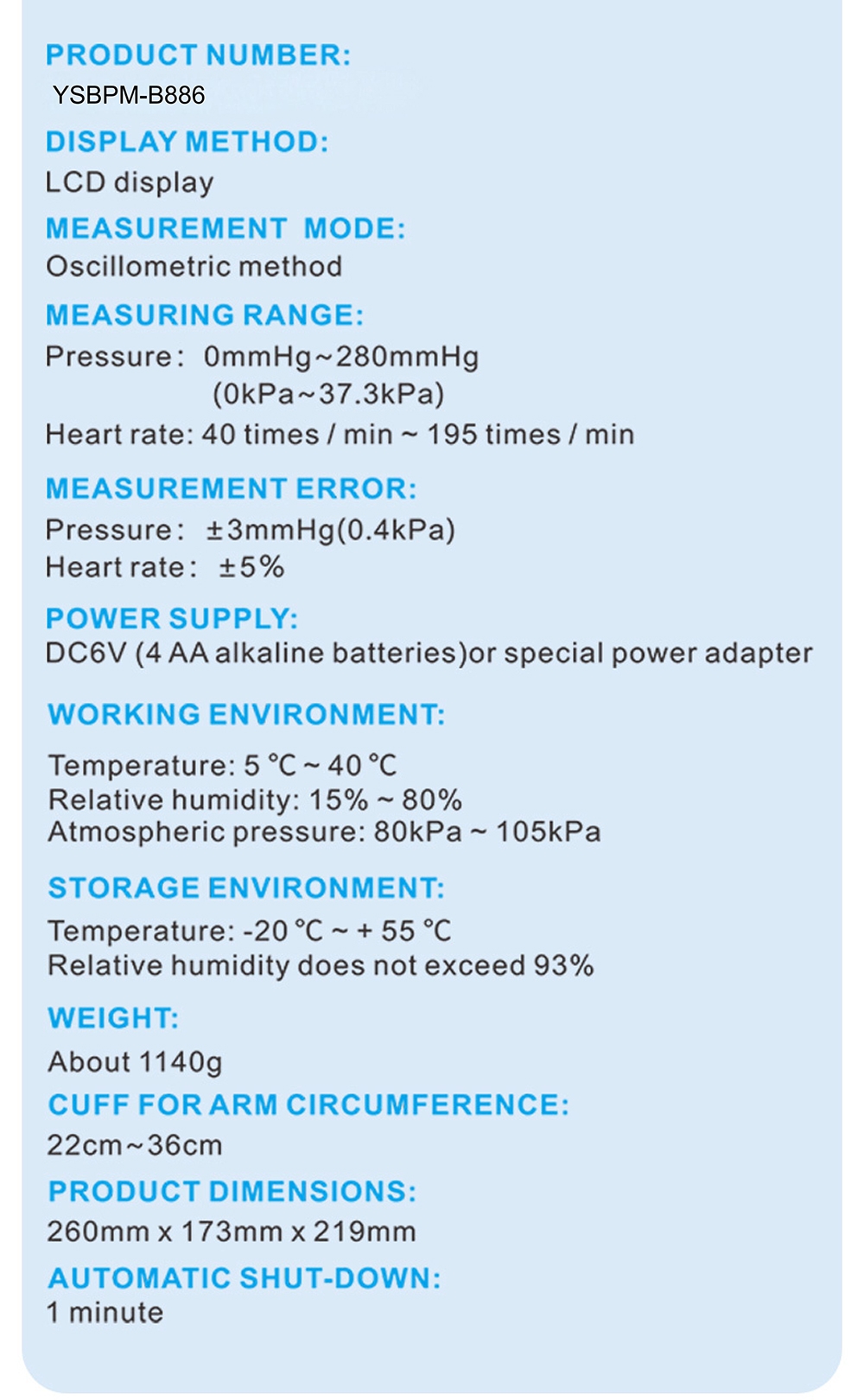 Monitor de presión arterial YSBPM-B886