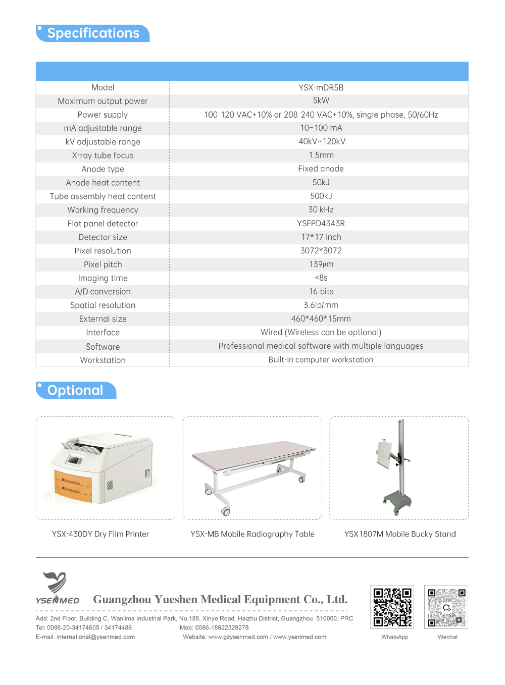 Equipo médico YSX500D(YSF50DR-B3) 50kW 630mA Sistema de rayos X médicos digitales